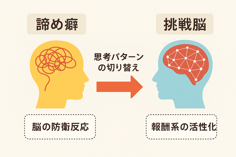 しかし、脳は一生を通して可塑性を持ち、何度でも“挑戦する脳”に書き換え可能です。